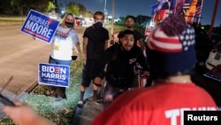 选举日即景:美国德克萨斯州休斯顿一投票站外,拜登的支持者与特朗普的支持者发生对峙。