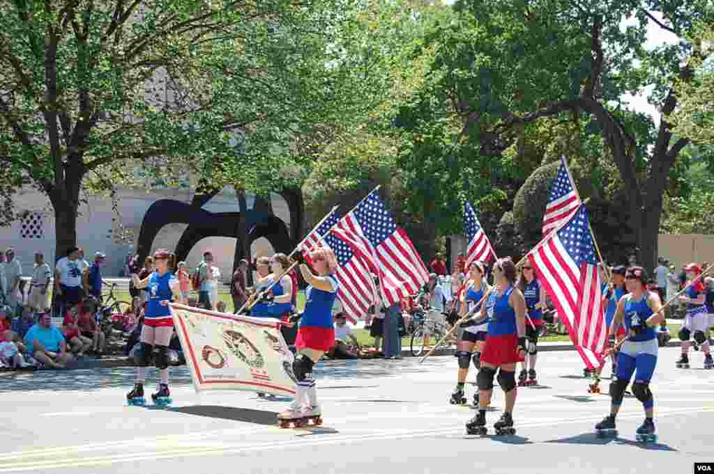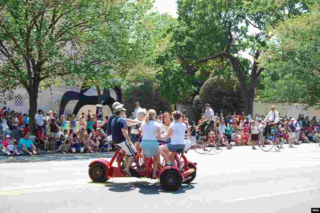 今年是美国这一崇尚民主自由的国家诞生236周年。数以万计的美国人把国家大草坪挤得水泄不通,观看在首都华盛顿宪法大道举行的每年一次的盛大庆祝游行。(美国之音林森拍摄)