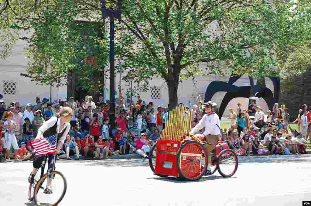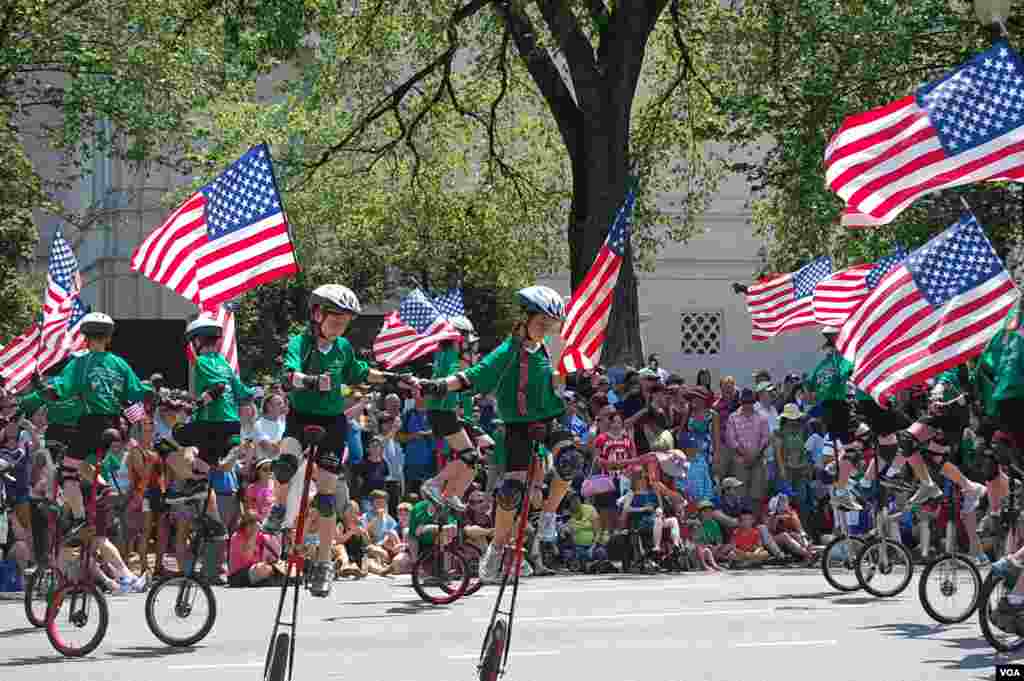 今年是美国这一崇尚民主自由的国家诞生236周年。数以万计的美国人把国家大草坪挤得水泄不通,观看在首都华盛顿宪法大道举行的每年一次的盛大庆祝游行。(美国之音林森拍摄)